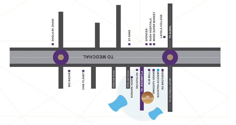 Brilliantly located at Suchitra Circle, Kompally, the nearby shopping centres provide the full gamut of amenities including medical and health facilities, gourmet restaurants and takeaway outlets, and lifestyle services. In this rapidly growing region, no other style of living comes close.